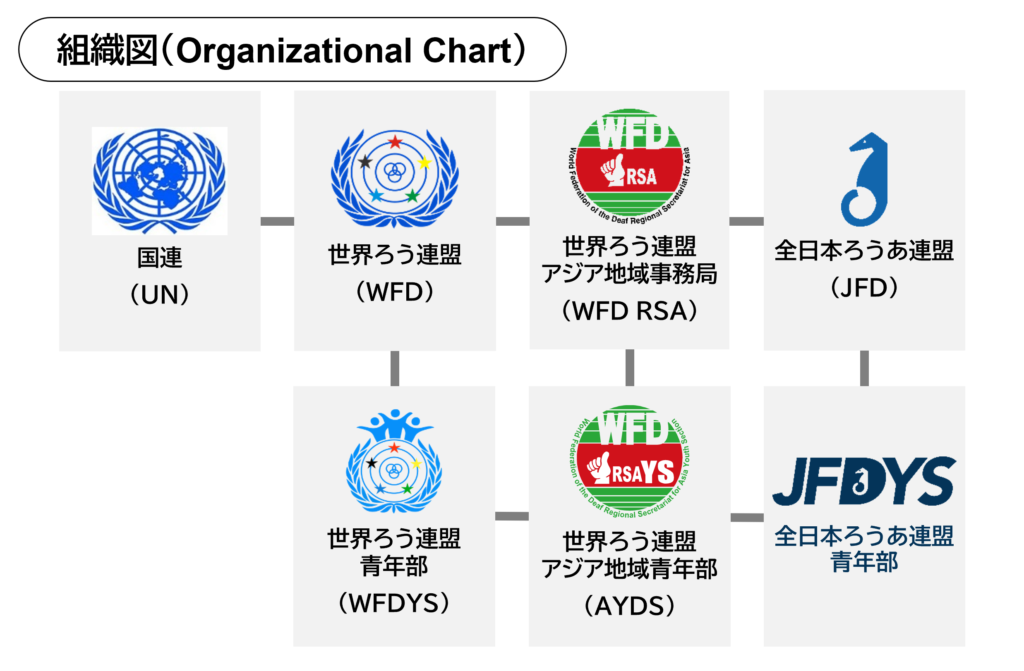 全日本ろうあ連盟青年部(JFDYS)は世界と繋がっており、国際活動を行っています。