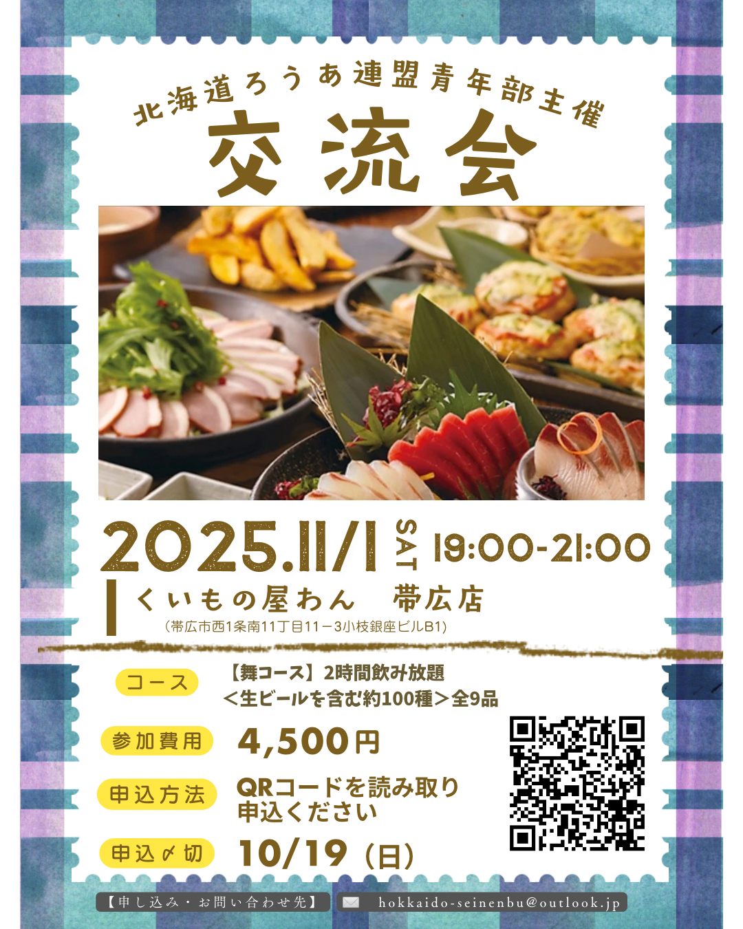 北海道ろうあ連盟青年部からのお知らせ 11月1日(土)に討論会終了後独自企画交流会を行います。 詳しくはチラシをご覧下さい! たくさんの申込お待ちしてます🙇♀️ …