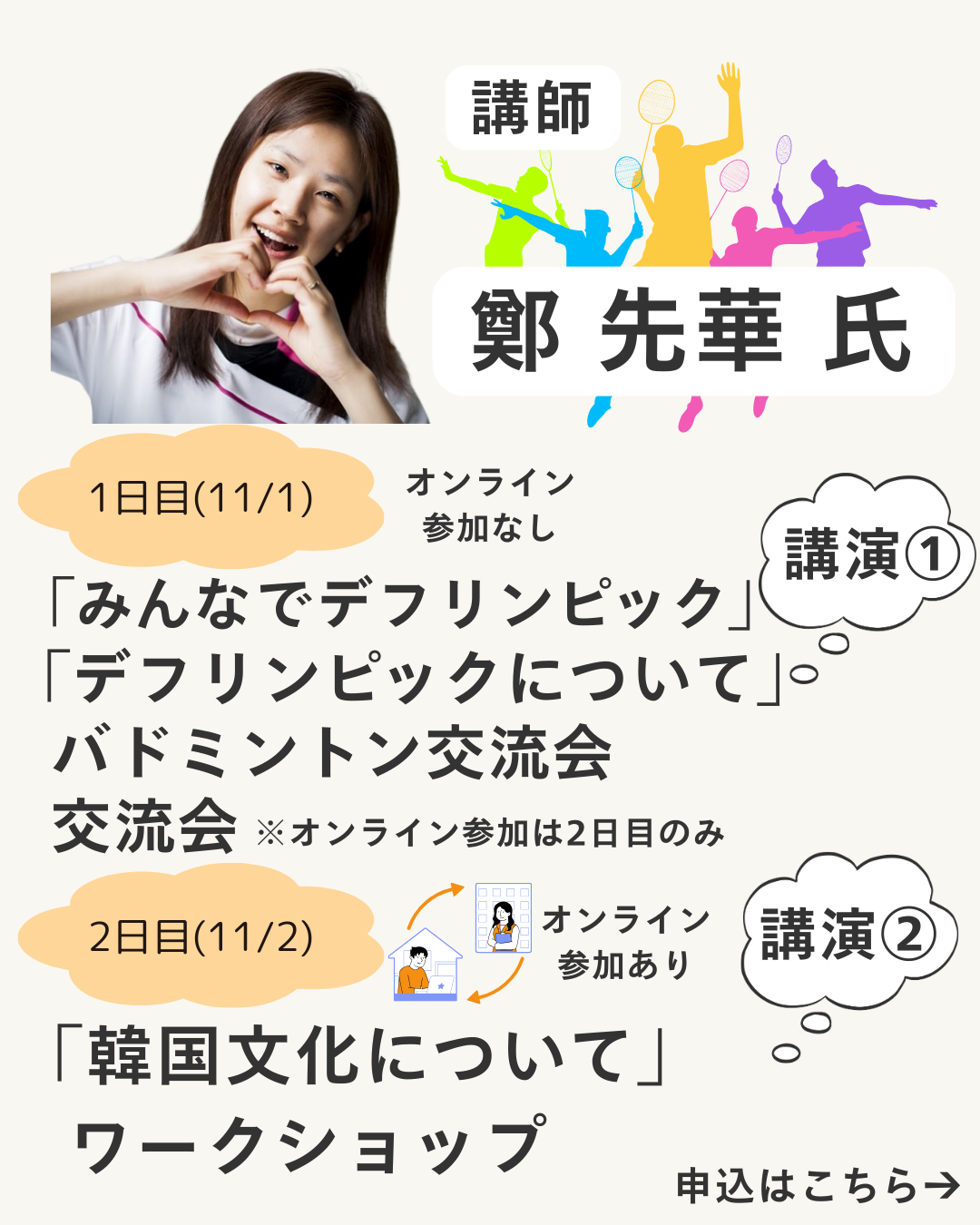 今年は1日目(11/1)は講演やみんなでバドミントン交流会をやる予定です!